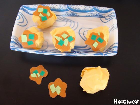 本物そっくり!新聞紙で作るたこやき〜縁日・屋台の食べ物 夏祭り工作 保育士・幼稚園教諭のための情報メディア ほいくis ほいくいず。