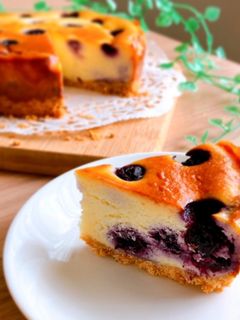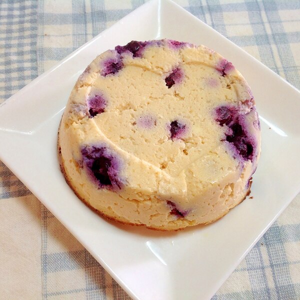冷凍ブルーベリーで作る簡単チーズケーキ。