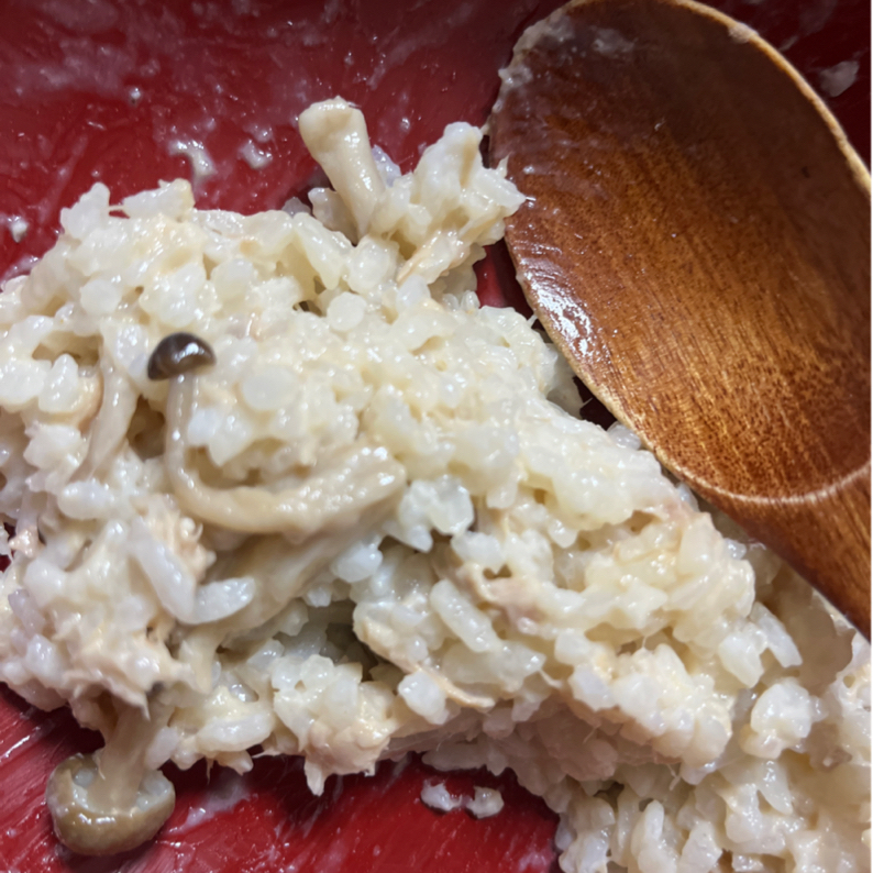 リゾットが食べたい♡なめ茸とツナの和風梅マヨリゾット。° : のんちゃんのお料理レシピ。