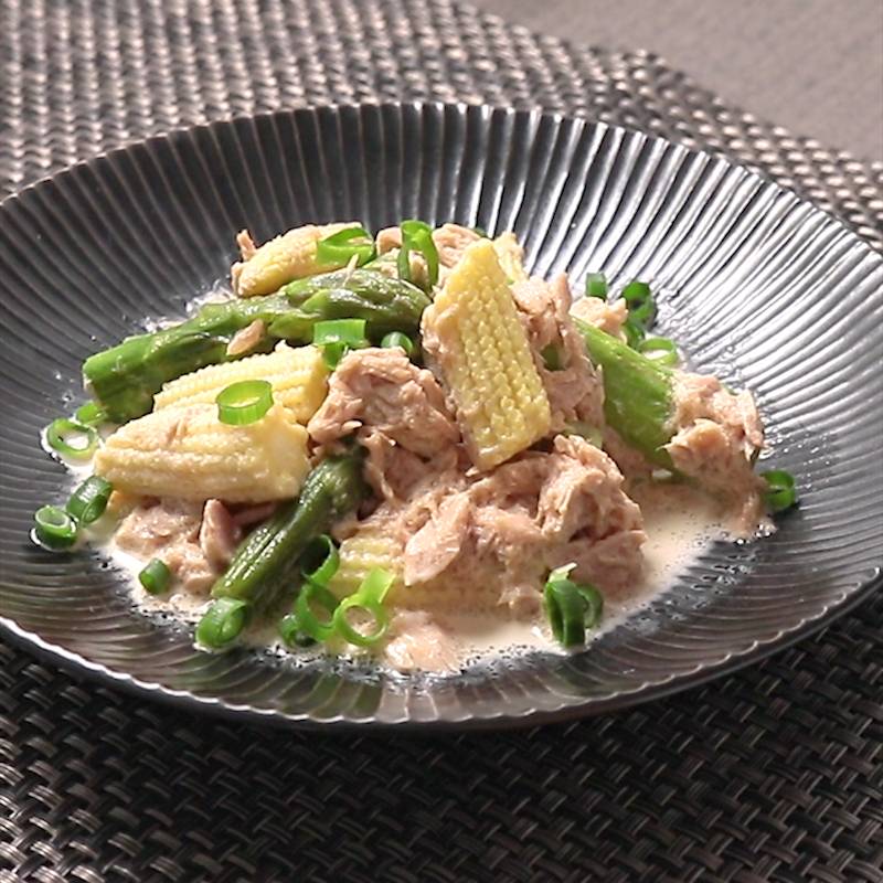 ヤングコーンとアスパラガスのツナマヨ和え。