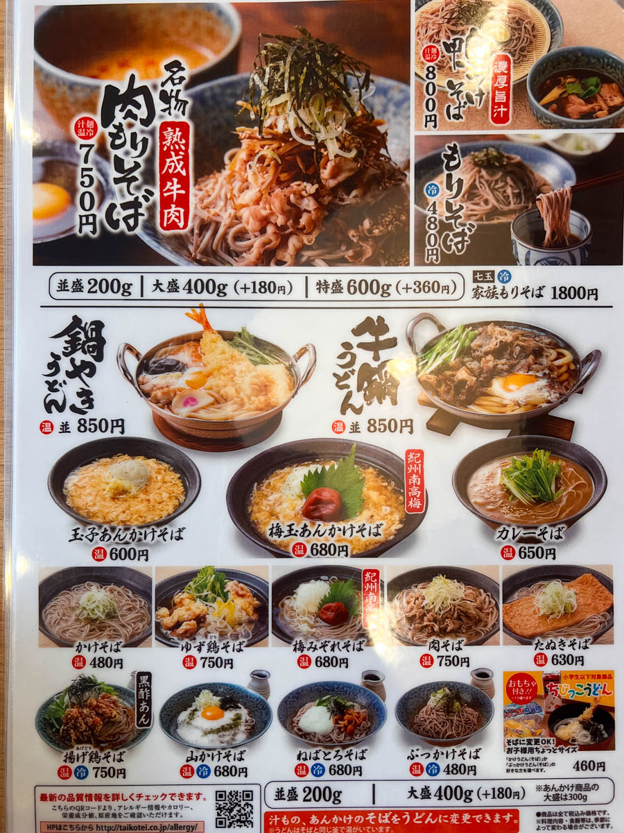 メニューそば太鼓亭うどん・そば 太鼓亭。