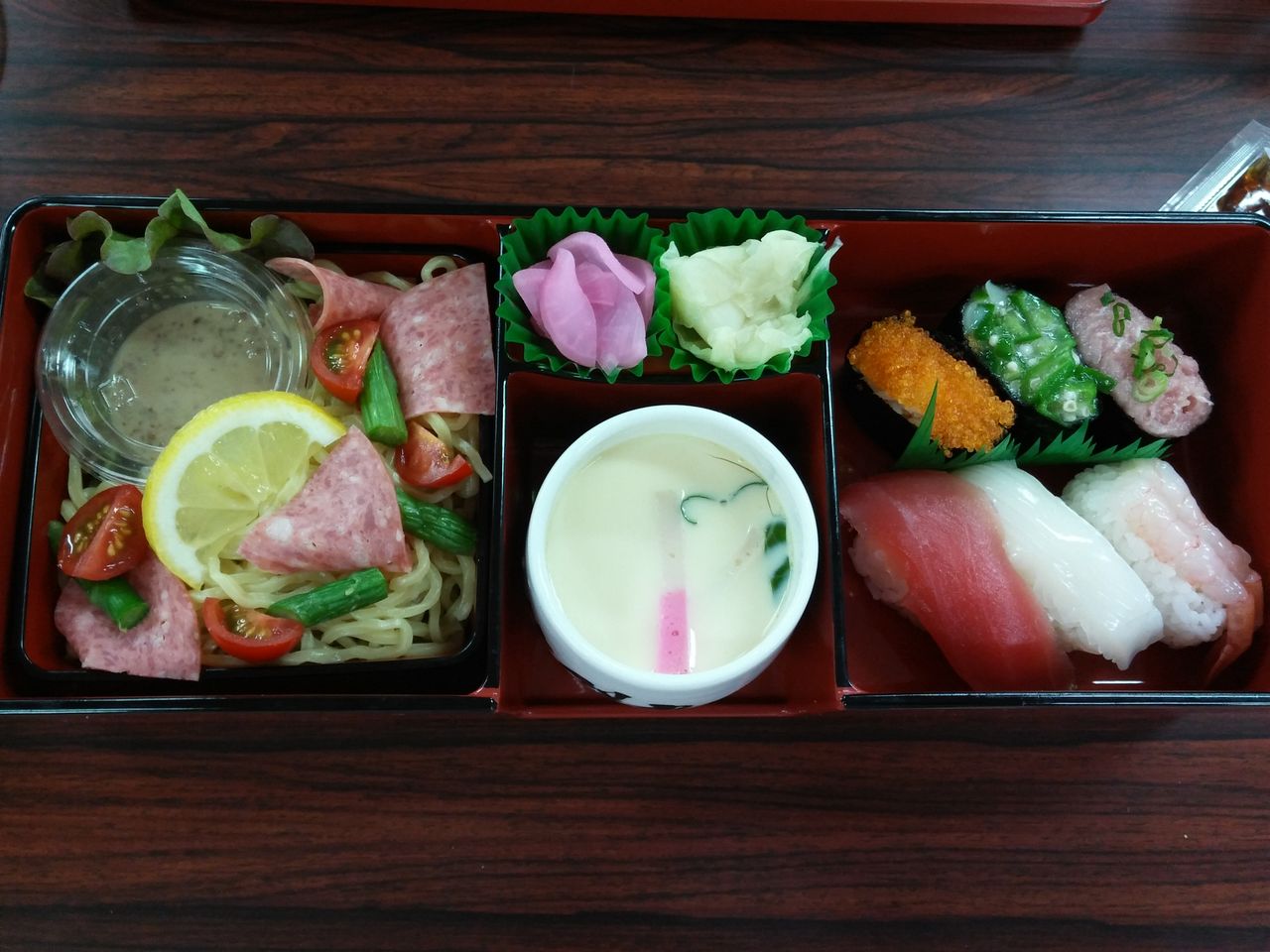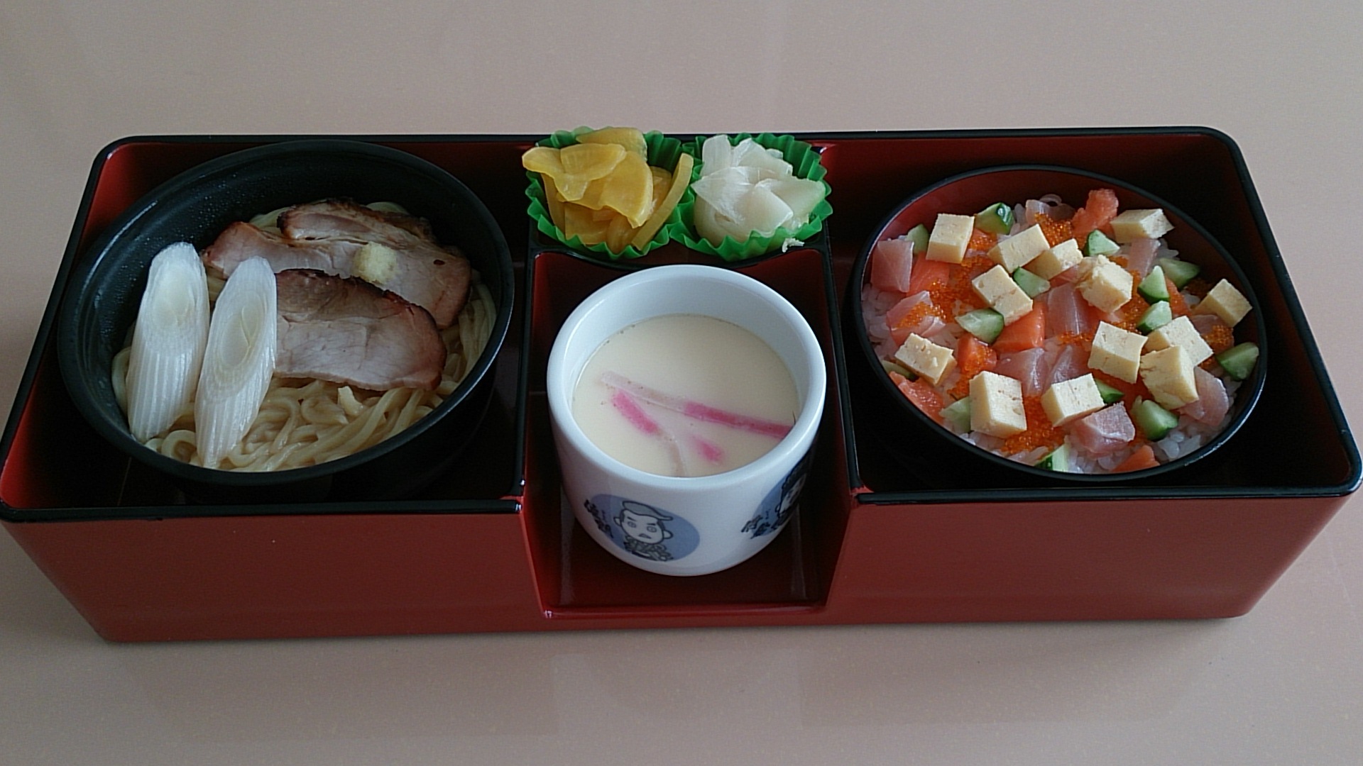 海鮮ちらし寿司ぶっかけそばチャーハンまるひあいのまる弁当ラ。