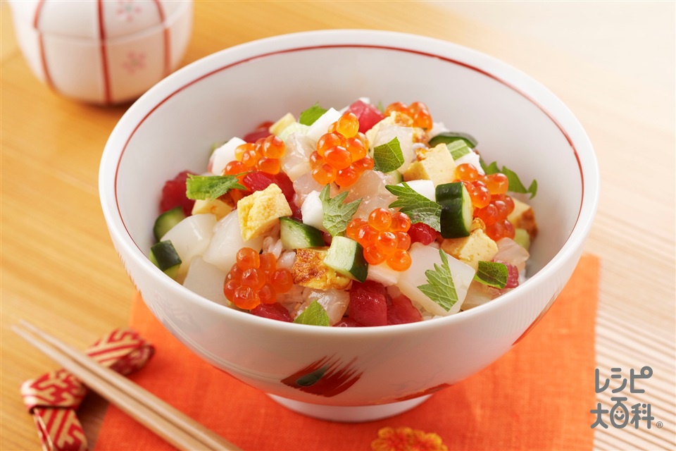 華やかさアップ! 海鮮ちらし寿司の作り方・レシピ。
