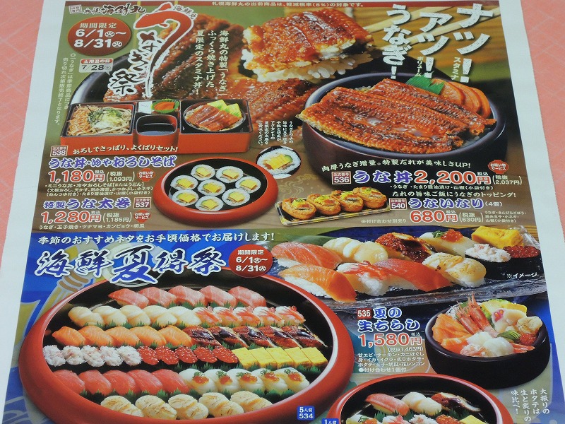 札幌海鮮丸山形北店さまの夏祭り!お得なメニューチラシです!山形の販促はアドポスへ。