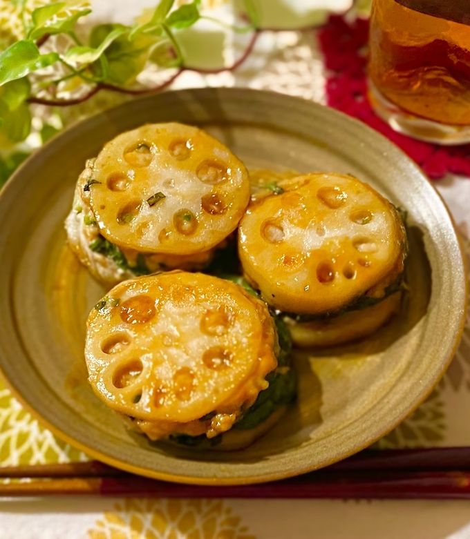 ボリューム満点♪蓮根のはさみ焼き 平日の時短ごはんレシピゆり子のおいしい暮らし。
