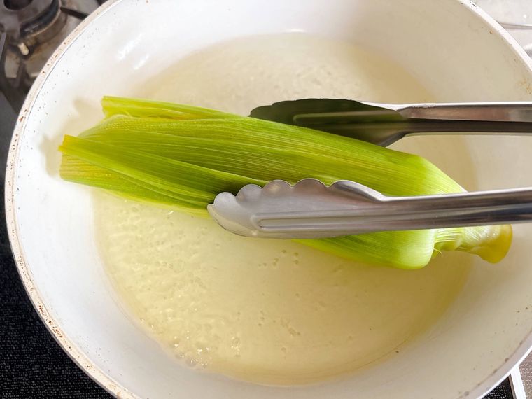 旬で甘い! フライパンで簡単「とうもろこしの蒸し方」。