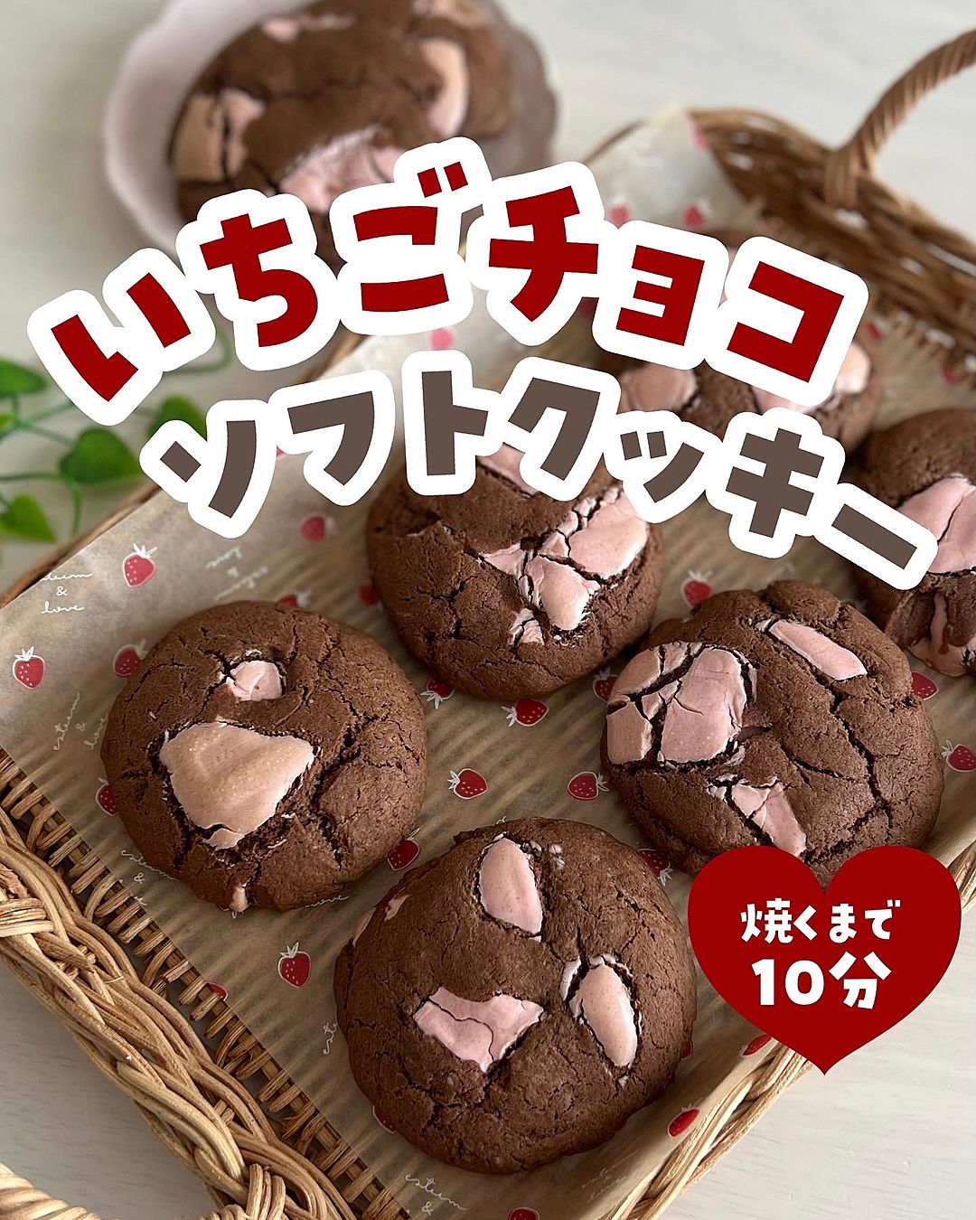 レシピ いちごのメロンパンクッキー🍓サクッとクッキーに口の中でとろけるチョコレート♥メロンパンクッキーレシピだよ!チョリーナ チョコ島。