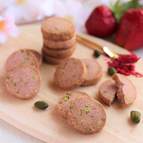 ほどける食感 ピスタチオとイチゴの米粉クッキ。