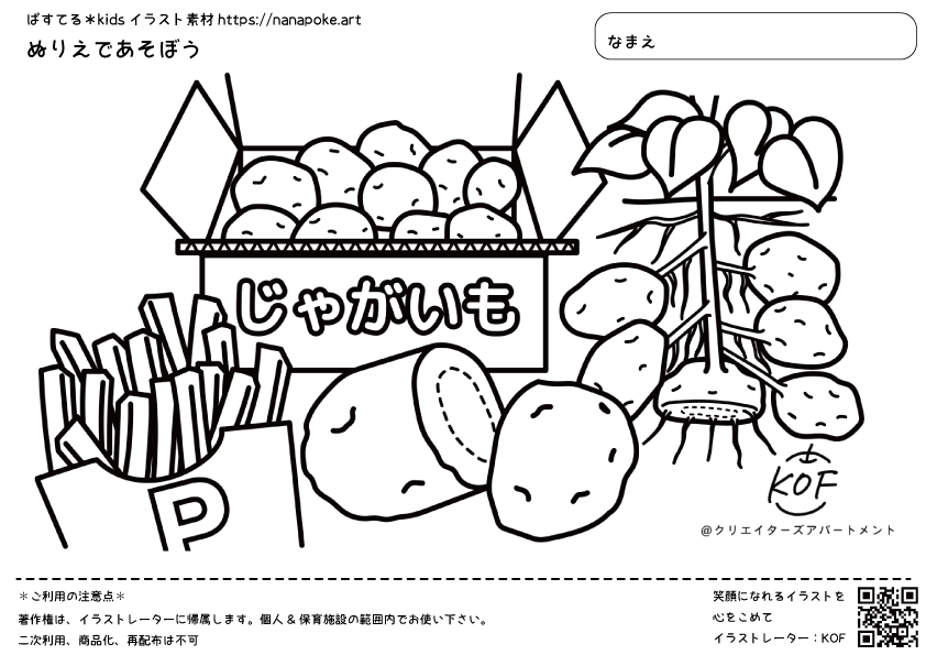 ぬりえで食育 野菜 じゃがいも – ぱすてる*kidsイラスト素材。