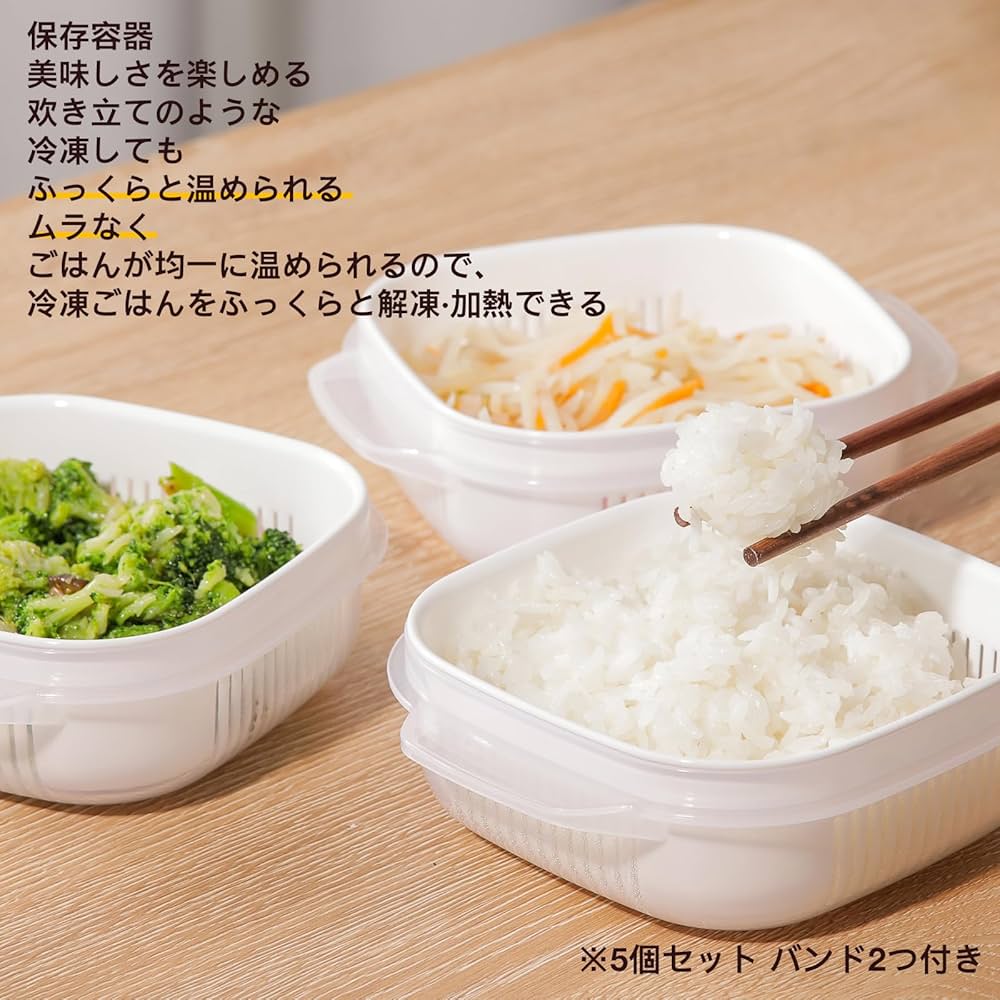 Amazon冷凍ごはん容器5個入り電子レンジ 食洗機対応ご飯 冷凍ご飯容器 保存容器 ごはん冷凍保存容器BPAフリー,バンド2つ付き保存容器・キャニスター オンライン通販。