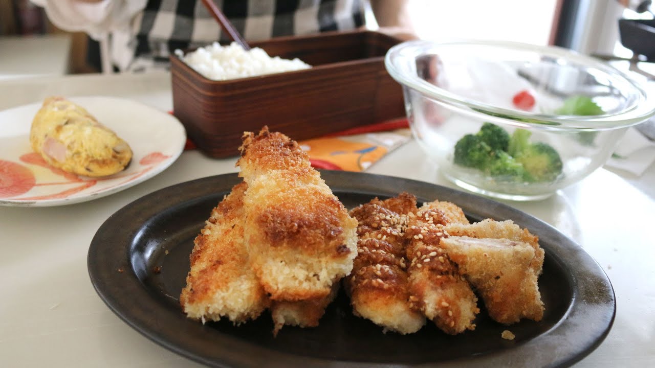 お弁当作り 節約ヘルシーで美味いとんかつ!エリンギ豚カツ弁当bento#914。