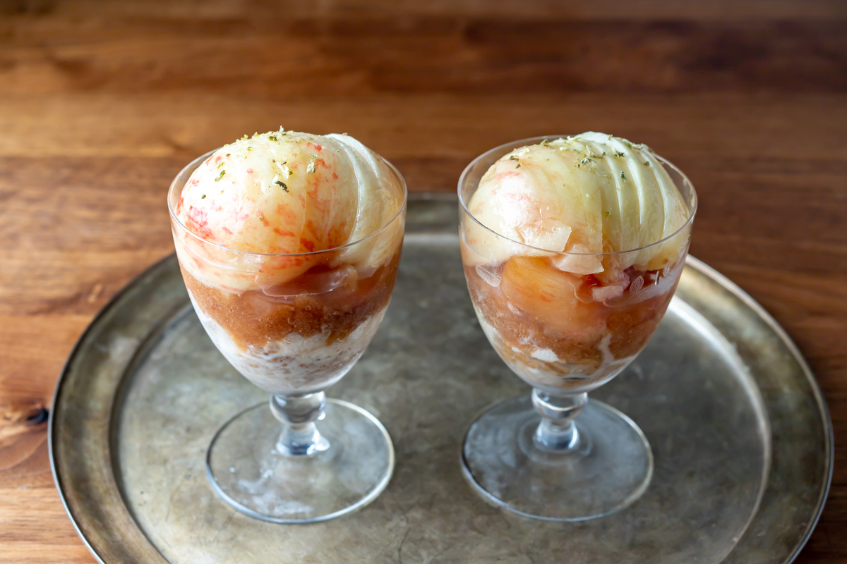 桃パフェほぼ桃丸ごと桃のシャーベット ばろんSnapdish スナップディッシュID:5C9i9a。