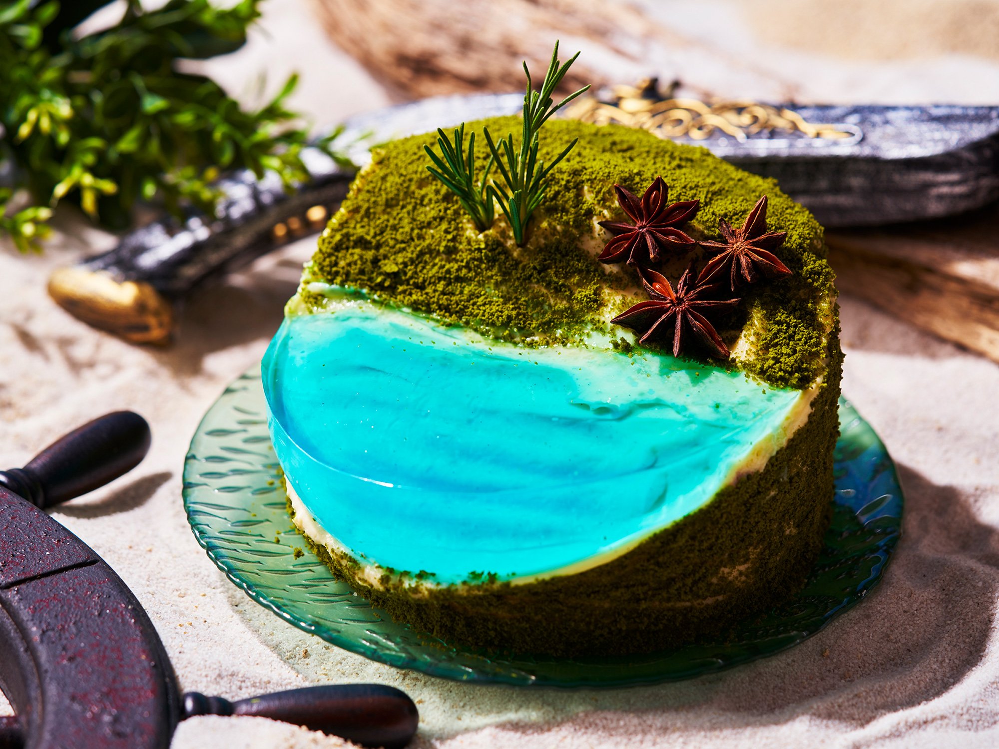 島と海を表現したケーキ「宝島-Treasure island-」 - 大阪ベイ経済新聞。