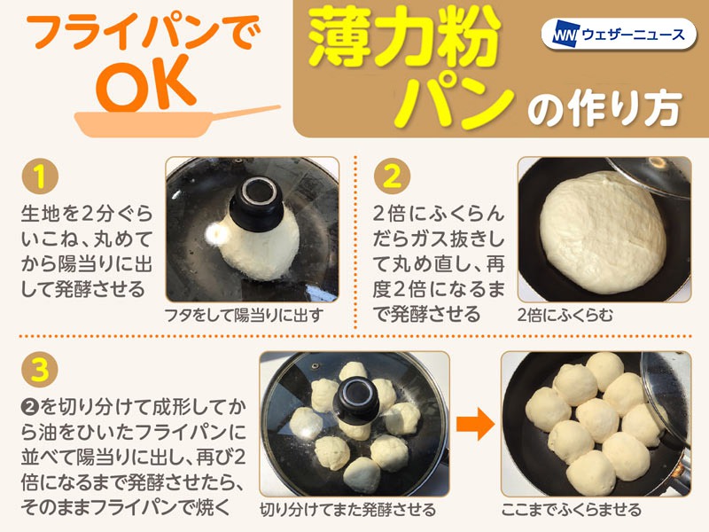 フライパンでかんたん薄力粉パン - ウェザーニュース。