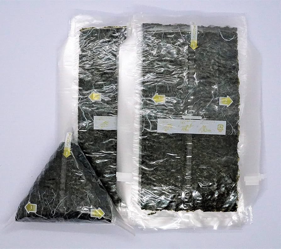 Amazonおにぎり用海苔 業務用 100枚入り 有明海産 コンビニフィルム 焼きのり全形半切り 1 2サイズ亀屋海苔 コンビニのようなパリパリおにぎりが気軽に作れます100枚✕9袋海産物問屋サンマルゴ焼きのり 通販。