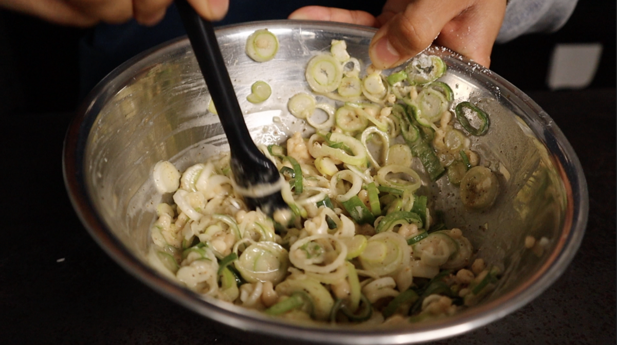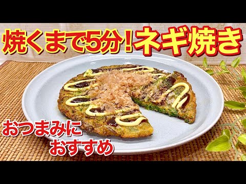 焼くまで5分!ネギ焼きの作り方♪ネギを切って他の材料と混ぜてフライパンで焼くだけで簡単!おつまみやおやつにも最高に美味しいです。 - YouTube。