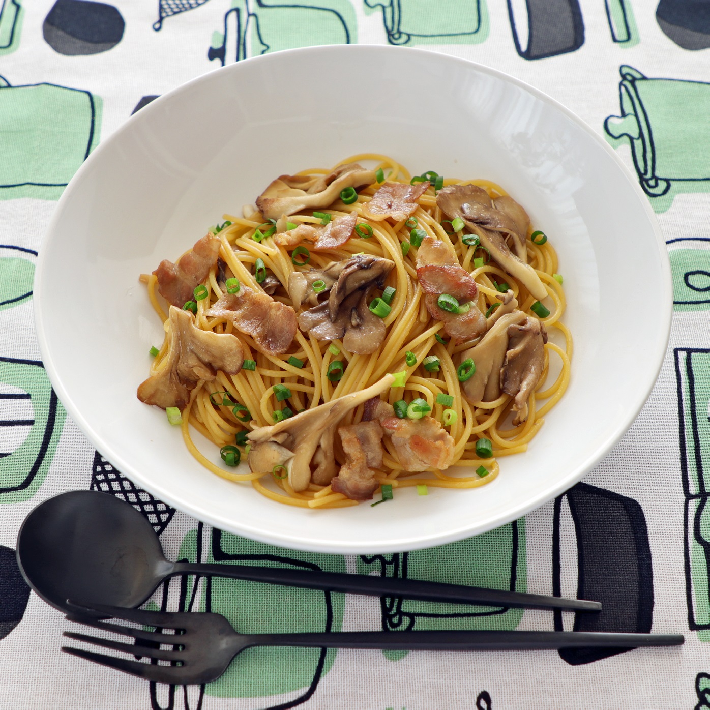 舞茸とベーコンの和風パスタ。