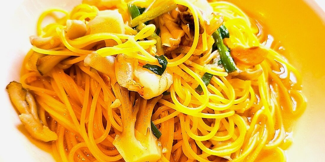和風パスタ〜舞茸とホタテ編。