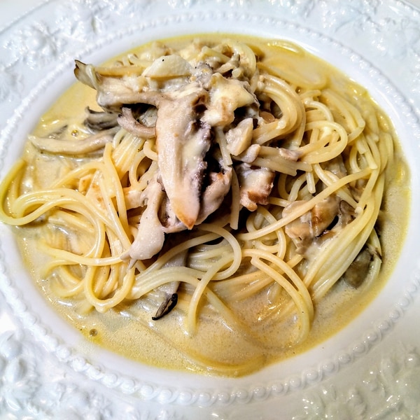 簡単 舞茸の和風クリームパスタ。