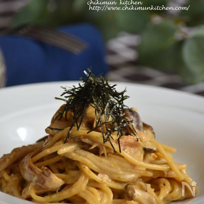 プロのおうちパスタ 鶏と舞茸のクリームパスタ。