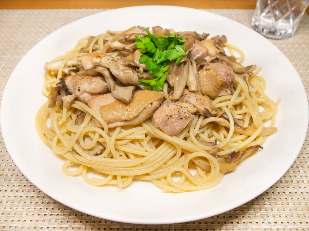 舞茸と鶏肉のパスタ。