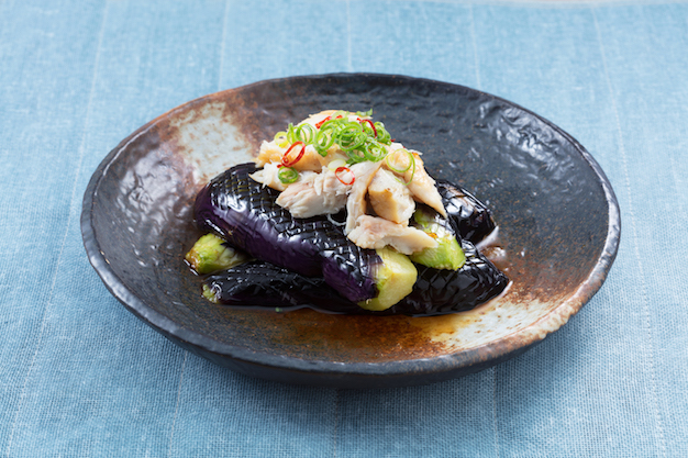 蒸し茄子梅肉ポン酢のせJA全農えひめ。
