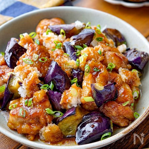 鶏肉と茄子のおろしポン酢だれ もりもり食べたい!夏おかず♪。