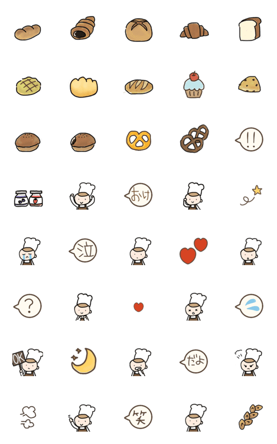 ゆるい手書きパン屋さんとパンの毎日絵文字のLINE絵文字画像、情報など。