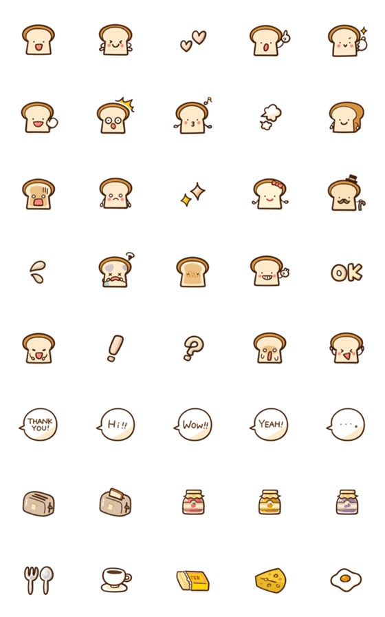 ゆる食パン シンプルかわいいパンの絵文字のLINE絵文字画像、情報など。