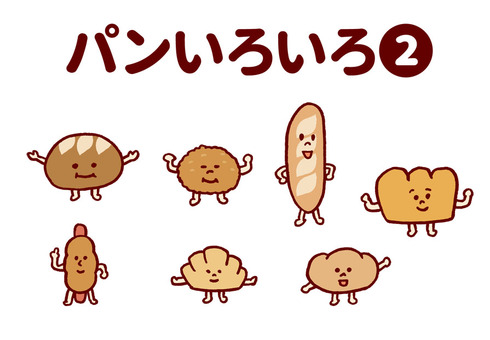 いろんなかわいいパンのイラスト無料で使えるイラストサイト – フリー素材Illustrator Factory。