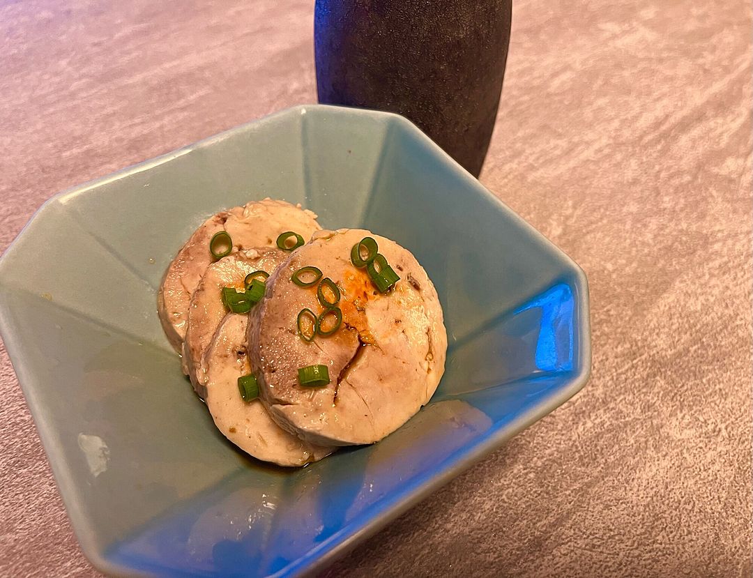 あん肝ポン酢」 . 今週はアンコウの肝が手に入ったので、「あん肝ポン酢」をご用意しています💁♂️ . こちらの商品はその名の通り、蒸したアンコウの肝 にポン酢をかけた一品。 ねっとりとした食感で、肝の旨味が口の中に広がります🤤 . 柑橘感強めな自家製ポン酢と共に。