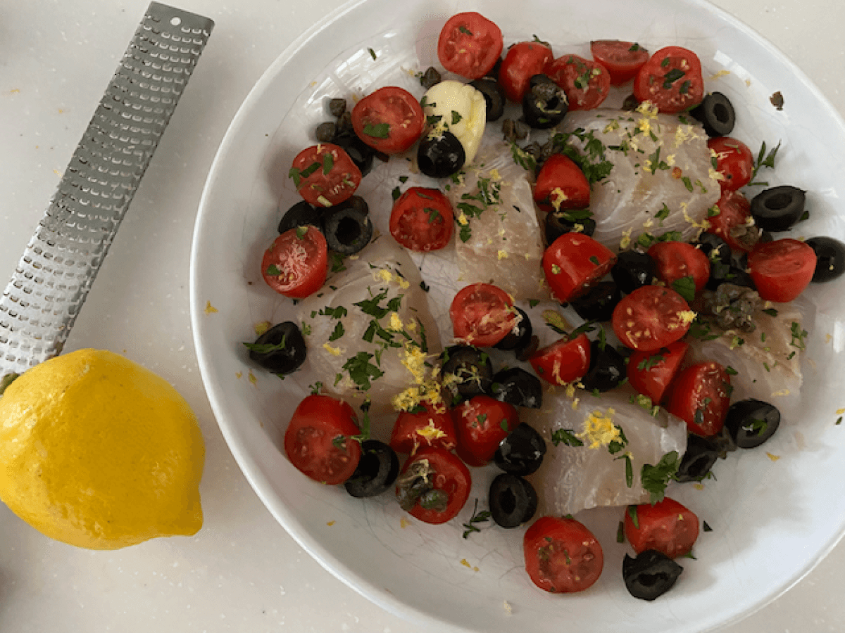 簡単おいしいイタリアンな魚料理!白身魚の地中海風。
