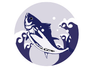 跳ねるマグロイラストのフリー素材イラストイメージ。