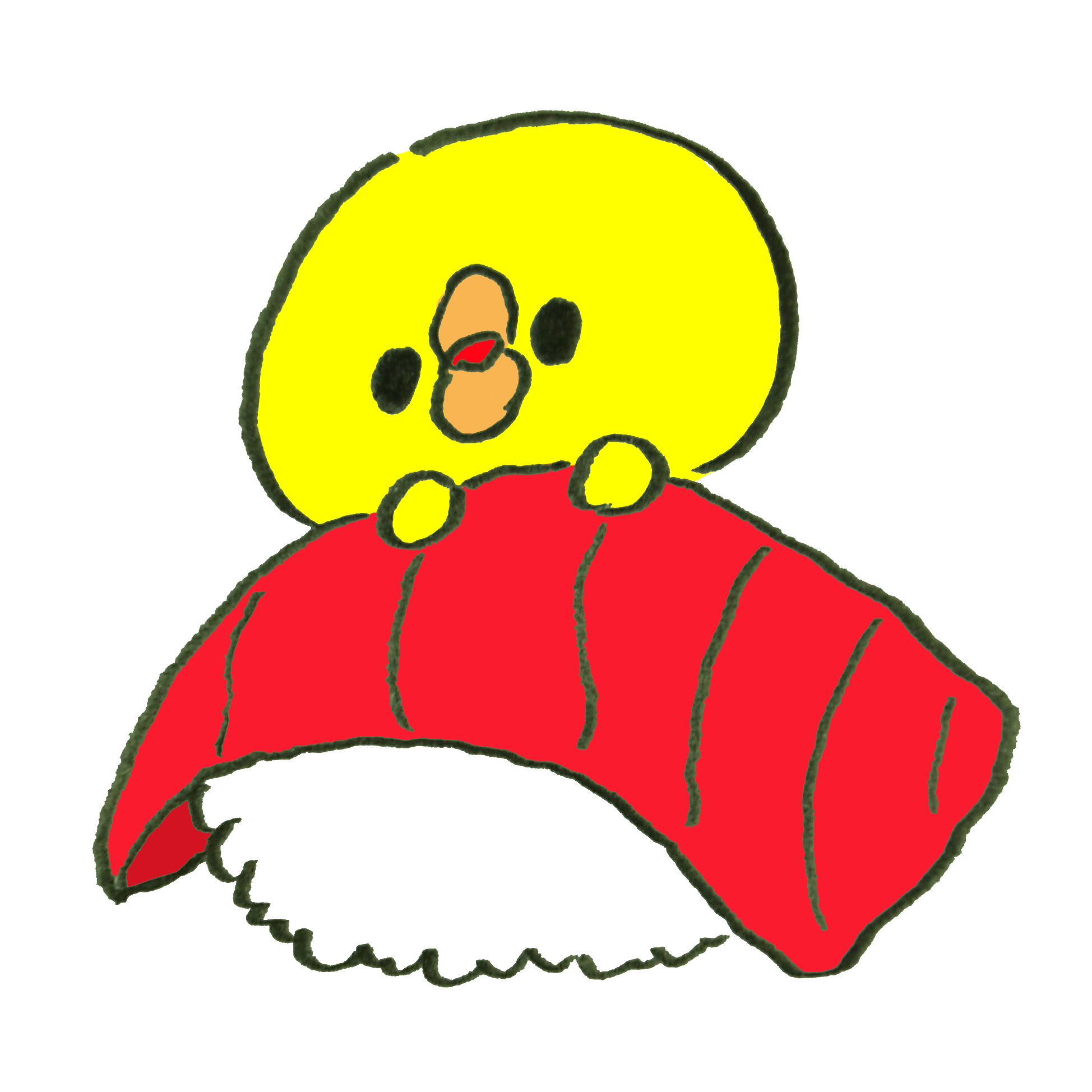 マグロのお寿司からのぞくひよこのイラストゆるくてかわいい無料イラスト・アイコン素材屋「ぴよたそ」。