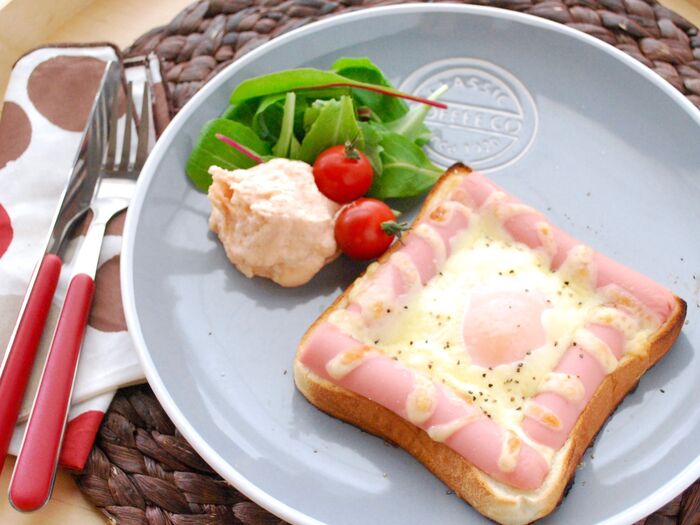 トーストアレンジレシピ☆魚肉ソーセージdeボリュームアップトースト。