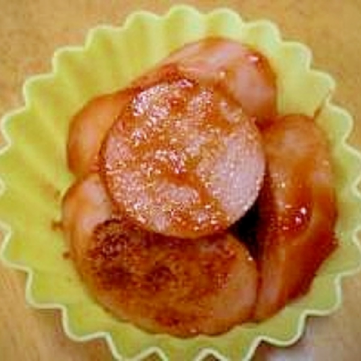 簡単弁当おかず「魚肉ソーセージのケチャップ炒め」。