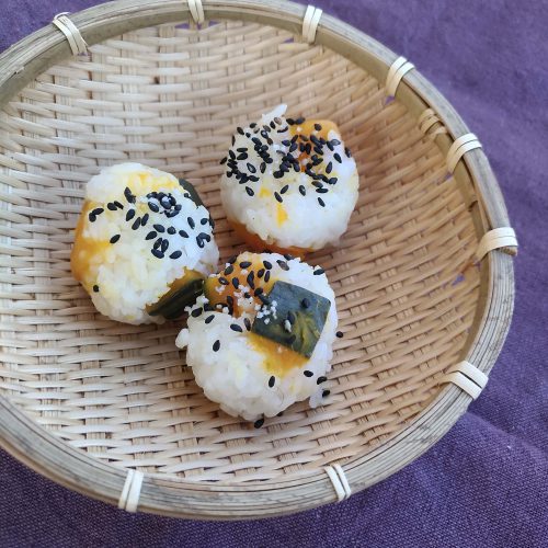 ⁑離乳食手づかみ⁑かぼちゃと卵の焼きおにぎり。