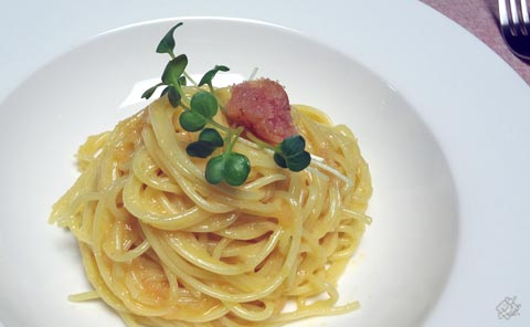 クリーミーで美味しいパスタソースでしたよ~ 博多明太子カルボナーラ!!食べ歩記~On Your Mark~。