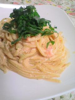 市販のタラコパスタの素で♪濃厚カルボナーラ。