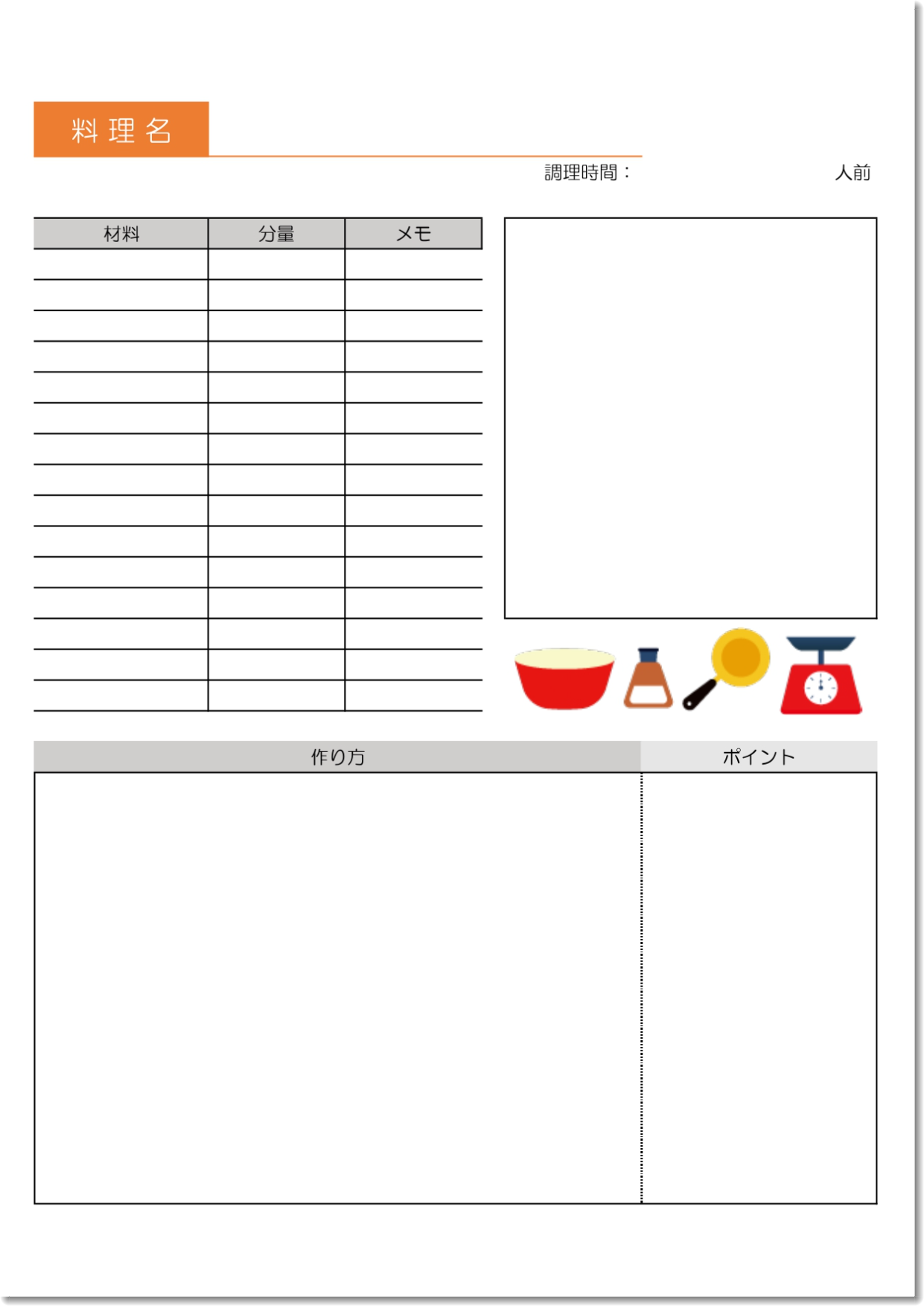 おしゃれでかわいいレシピ用紙の雛形 料理表と献立メモ 配布や印刷・Excel・Word・PDFの無料テンプレートをダウンロード。