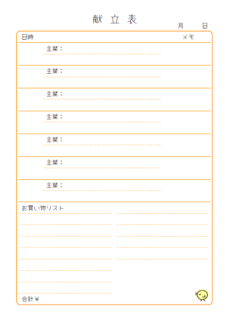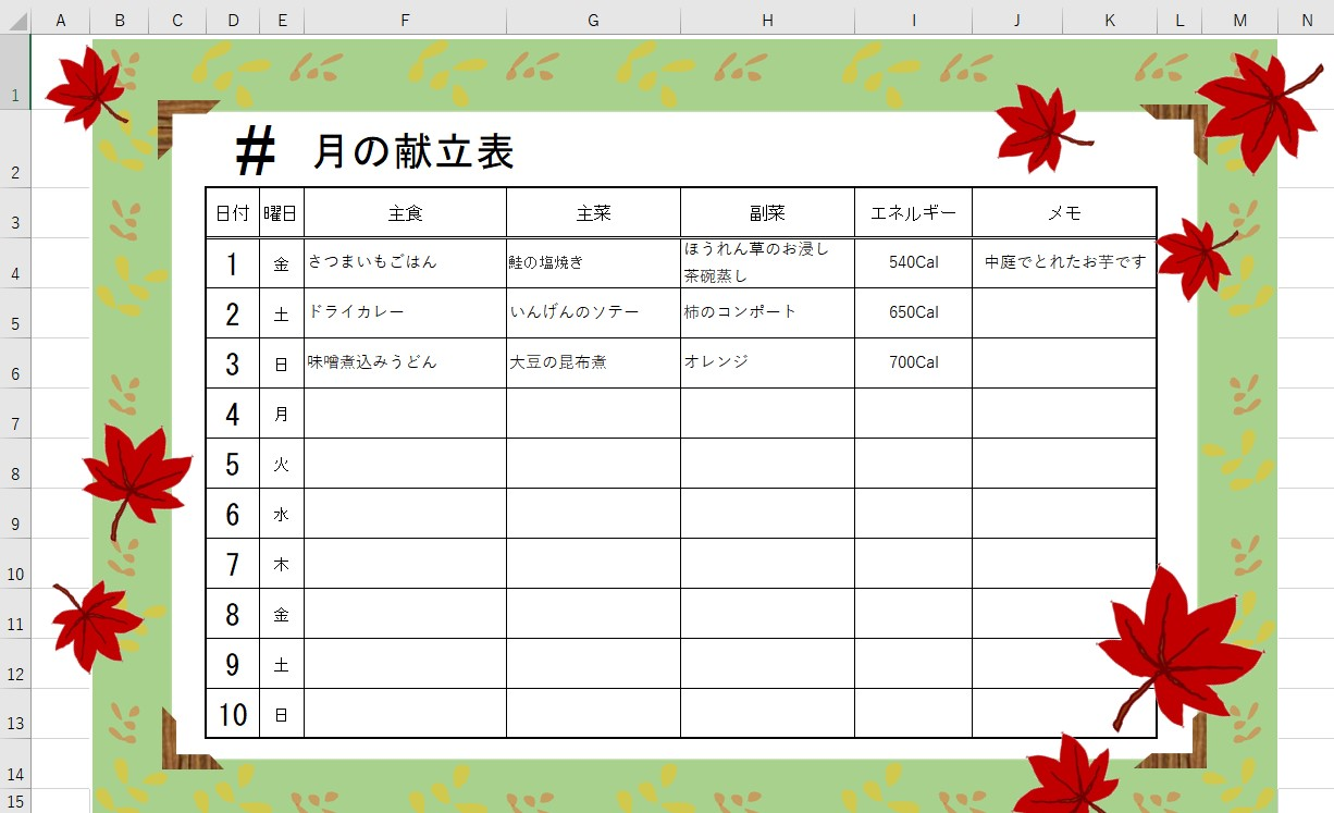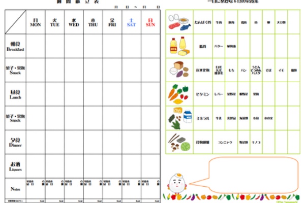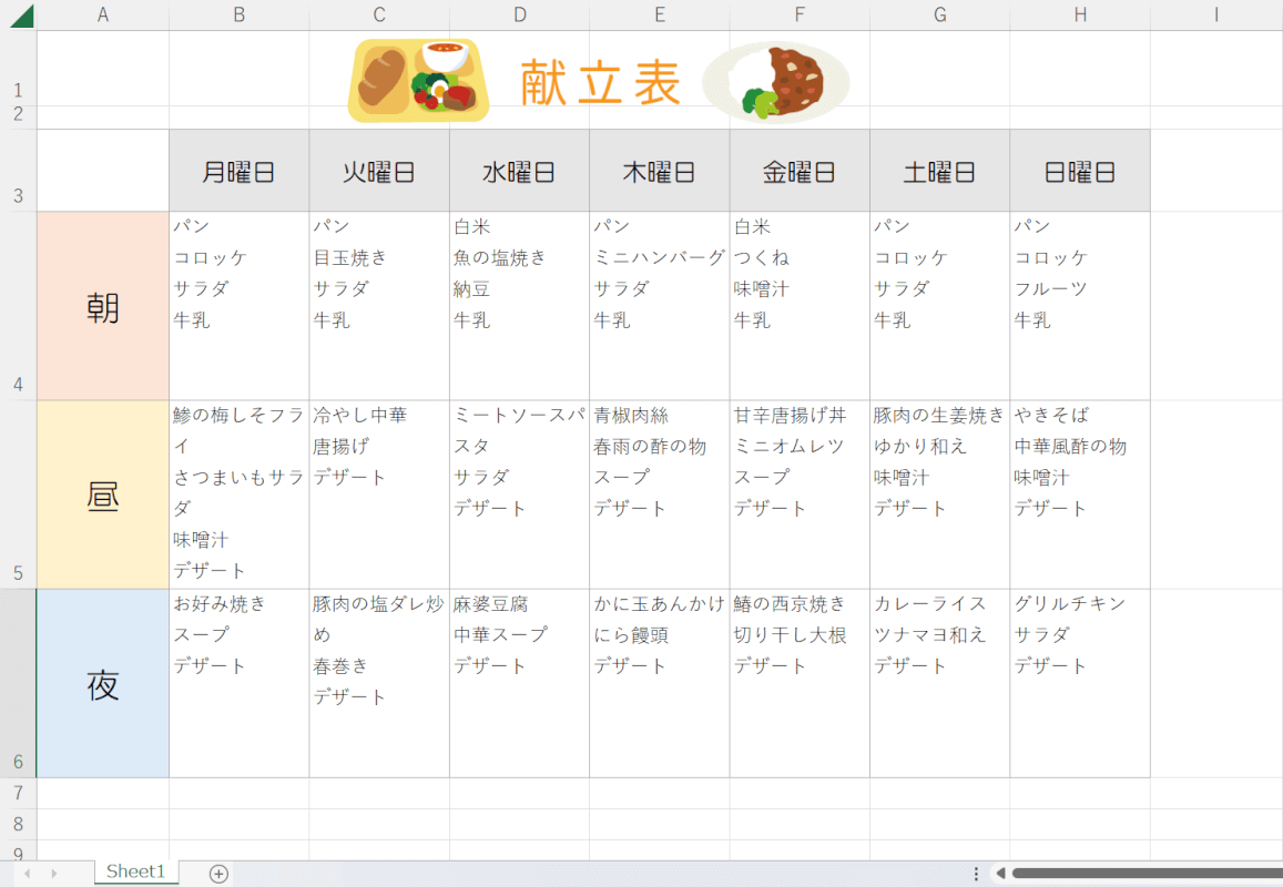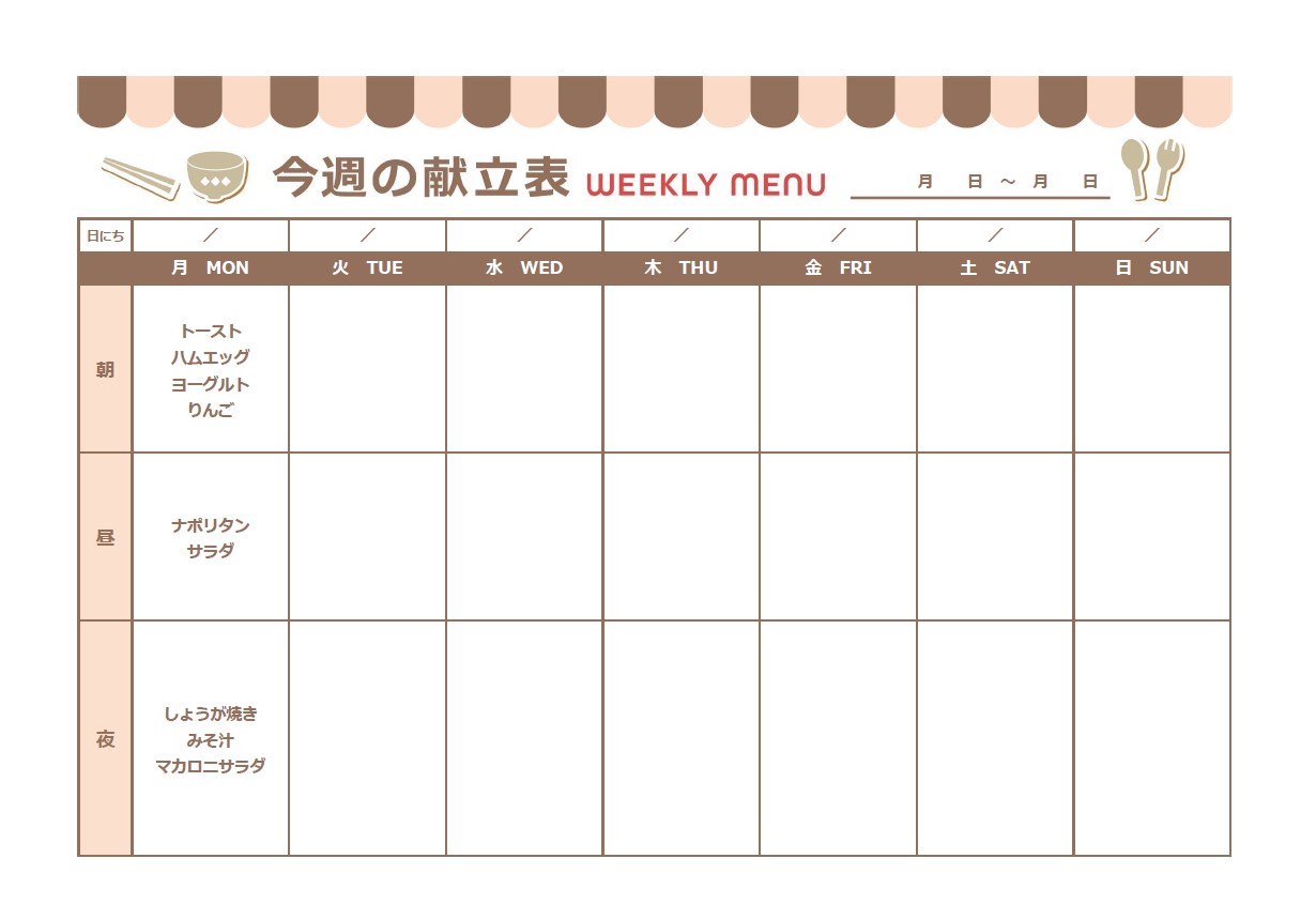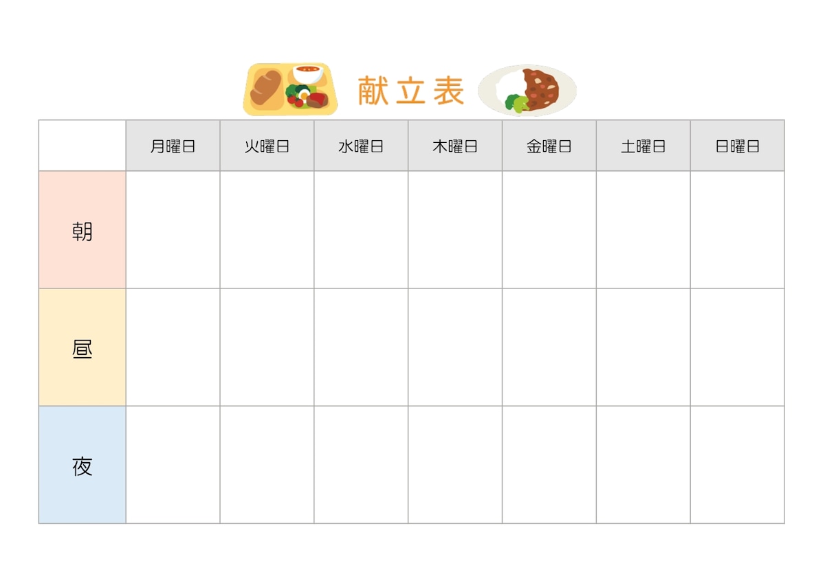献立表 - 無料テンプレート公開中 - 楽しもう Office。
