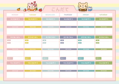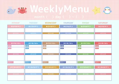 かわいい!保育園・幼稚園で!献立表1週間から2週間の無料テンプレート📑無料ダウンロード!テンプレルン📑無料ダウンロード!テンプレルン。