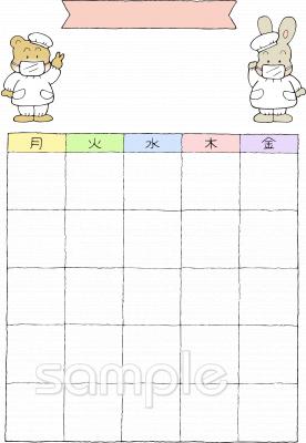 病院や施設で使えるかわいいおしゃれな献立表のPDFテンプレートを無料ダウンロード。