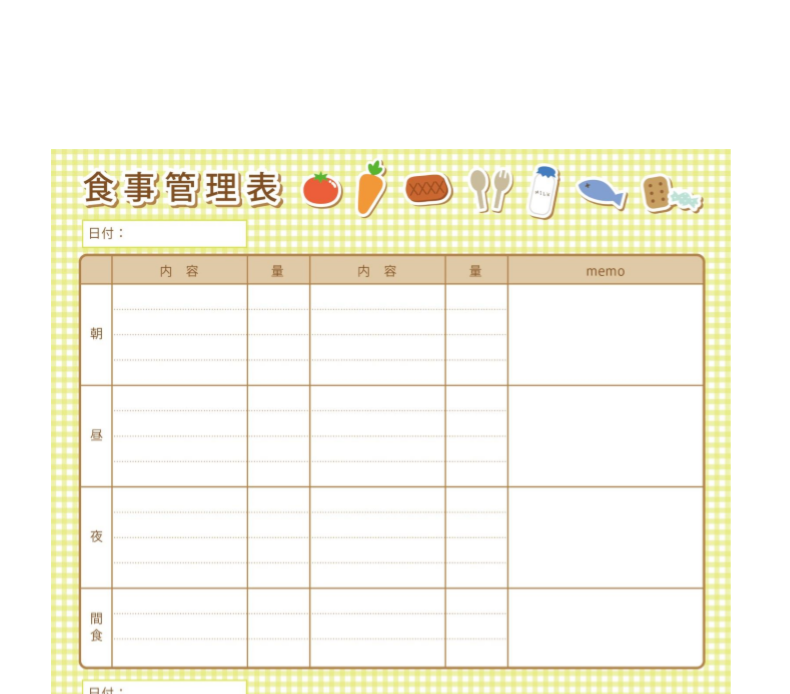 献立表 ※家庭用無料の雛形・書式・テンプレート・書き方ひな形の知りたい。