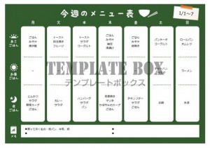 献立表・メニュー簡単に無料テンプレートをダウンロードテンプレートボックス。