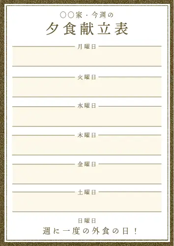 もうこれで迷わない!今週の夕飯の献立表! 無料テンプレートMama Craft。