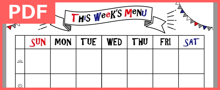 1週間を管理出来るかわいいポップな献立表はPDF書式なので手書きで作り方も簡単。