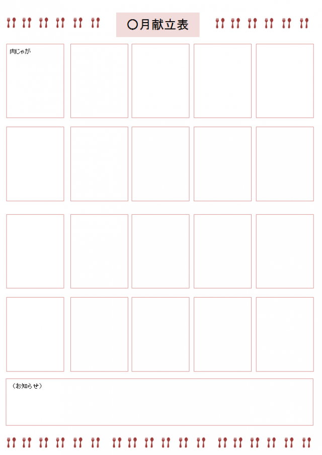 ダウンロード 献立表 テンプレート かわいい – Homuinteria.com BA。