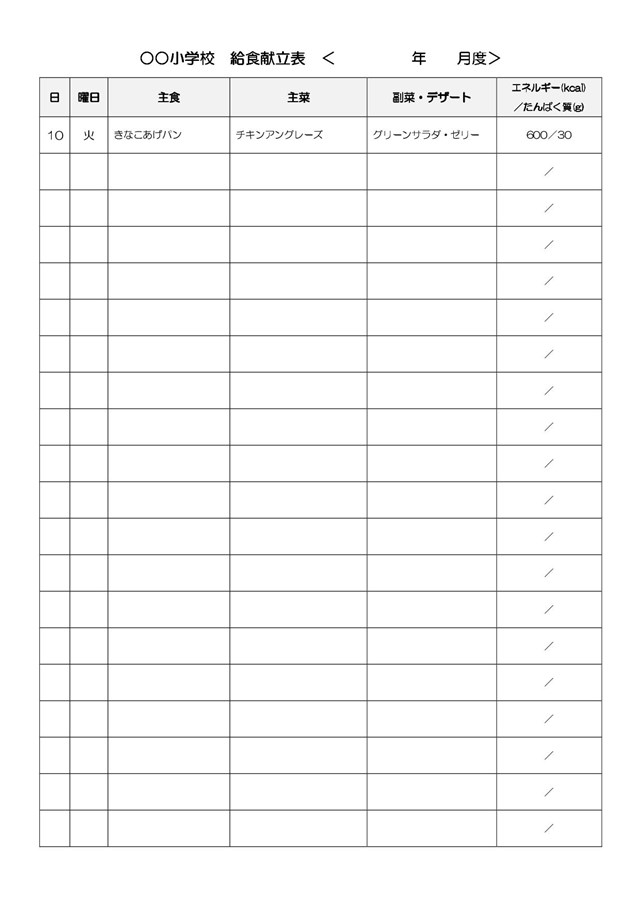給食献立表 縦 テンプレート無料イラスト素材素材ラボ。