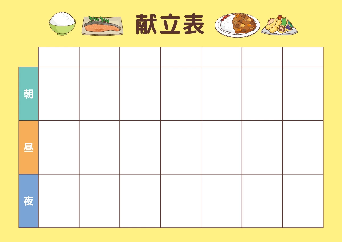 かわいい イラスト入り、印刷で手書きも簡単!献立表の無料テンプレート📑無料ダウンロード!テンプレルン📑無料ダウンロード!テンプレルン。